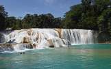Departure to Palenque with a stop at the Agua Azul (Blue Water) waterfalls; the trip will lasts approximately 5 hours on a mountain road and on the road the visitors can enjoy the abundant vegetation of this Chiapanecan (from the State of Chiapas) zone. Arrival at Palenque and check-in at the hotel Villa Mercedes Palenque or similar. (Breakfast).